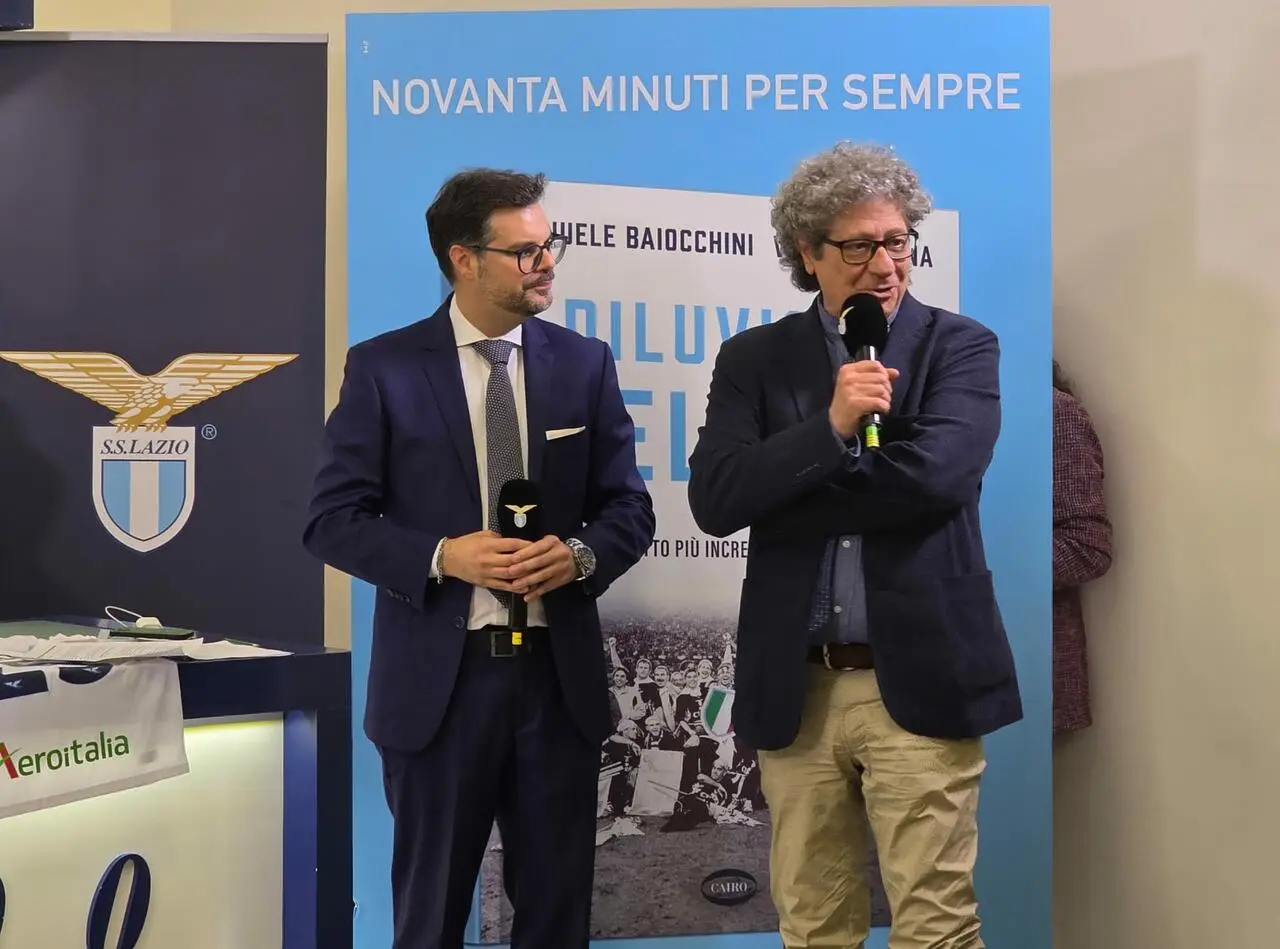 L`evento di Formello è incentrato sulla presentazione del libro `Diluvio e Delirio, lo Scudetto più incredibile di sempre`, volume scritto dai giornalisti Valerio Spina e Manuele Baiocchini che ripercorre la straordinaria cavalcata della Lazio verso lo Scudetto del 2000. La prefazione è stata scritta da Riccardo Cucchi. Queste le sue parole.