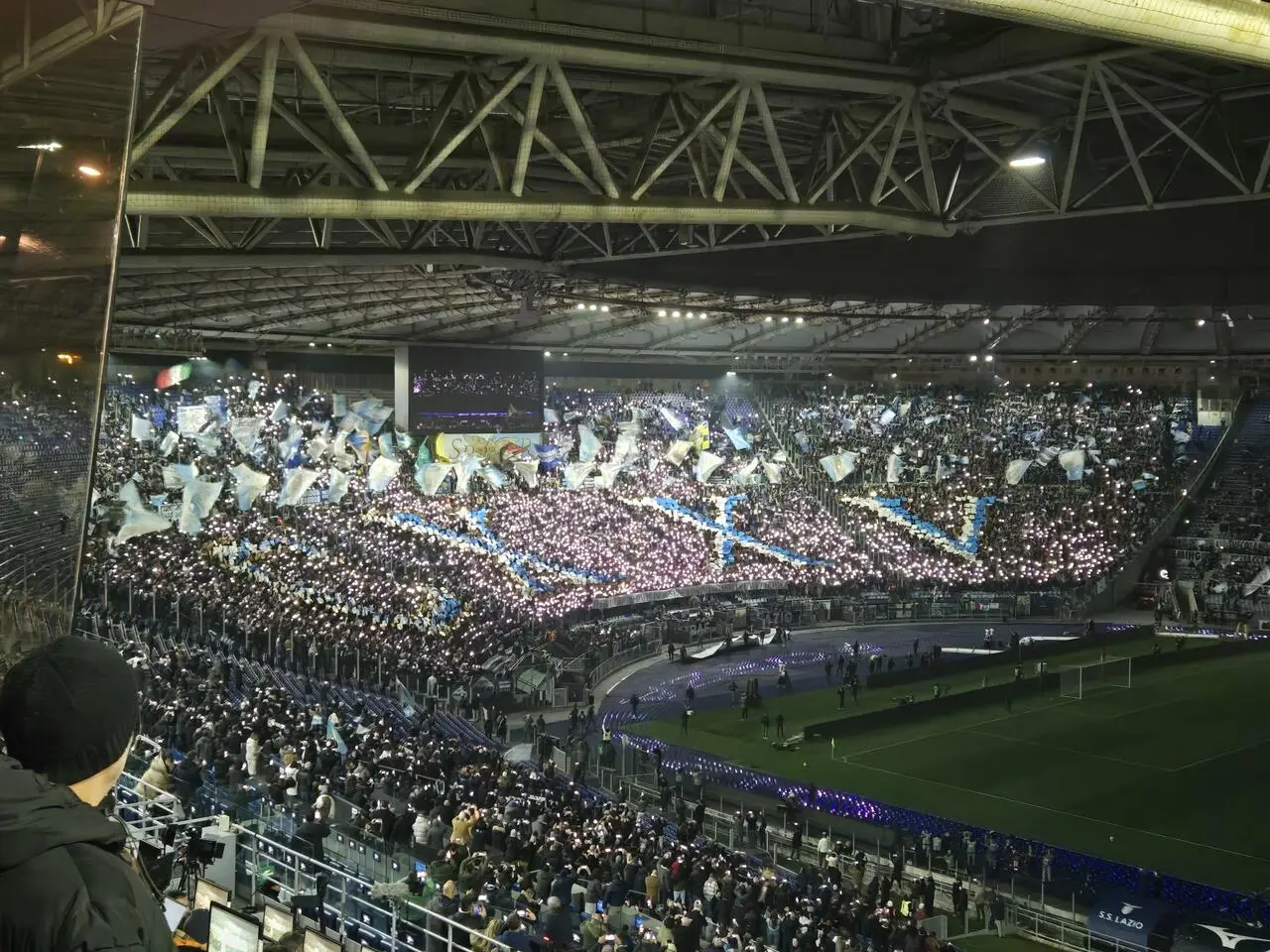 125 anni di Lazio. Prima del match Lazio - Como, spettacolo di luci all’Olimpico. Un fascio di led intorno alla pista d’atletica ha illuminato lo stadio e al centro del campo è stato proiettato il simbolo del club. La voce di Pino Insegno ha ripercorso la storia del club.