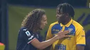 Durante la gara di ieri sera tra Frosinone e Lazio si sono scaldati gli animi in campo in un paio di situazioni. Nel finale in particolare un contatto duro su Castellanos ha acceso gli animi con protagonisti Okoli e Guendouzi. Il siparietto tra i due è diventato virale sui social con il francese della Lazio che indicando lo stemma della squadra ciociara è sembrato dire al difensore “Tu giochi nel Frosinone… Bravo”.