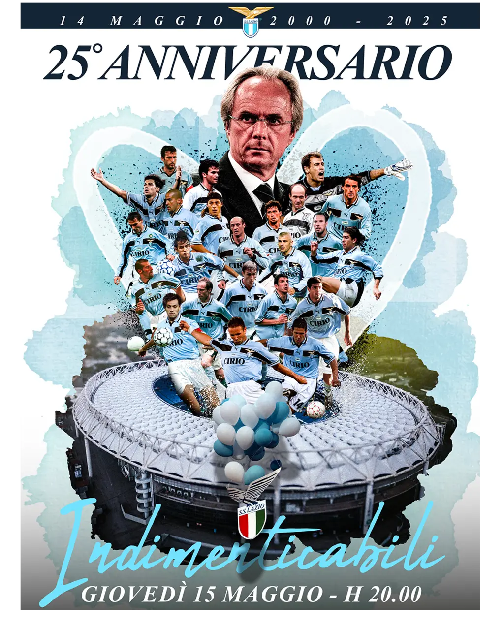 “Indimenticabili” celebrerà il 25° anniversario del secondo Scudetto conquistato dalla Lazio, un trionfo entrato nella leggenda del calcio italiano. Quella vittoria del 2000 – ottenuta sotto la presidenza di Sergio Cragnotti e la guida tecnica dell’indimenticato mister Sven-Göran Eriksson – arrivò al termine di un finale di stagione memorabile, passato alla storia per il celebre “diluvio di Perugia”, quando la Lazio riuscì a superare la Juventus all’ultima giornata. A distanza di venticinque anni, l’entusiasmo e l’orgoglio per quella impresa sono più vivi che mai nella memoria collettiva dei tifosi biancocelesti.