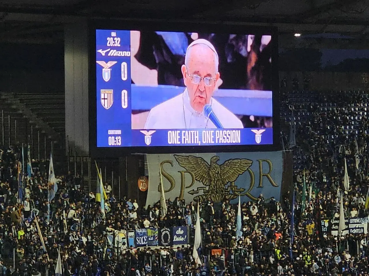 Il ricordo di Papa Francesco anche all'Olimpico. Le immagini Pontefice e quelle della squadra ai funerali a San Pietro sono apparse sui maxi schermi. Lotito, presente all'ultimo saluto aveva definito Papa Francesco un maestro di umanità e misericordia. Anche i tifosi hanno voluto tributare un applauso al Santo Padre.