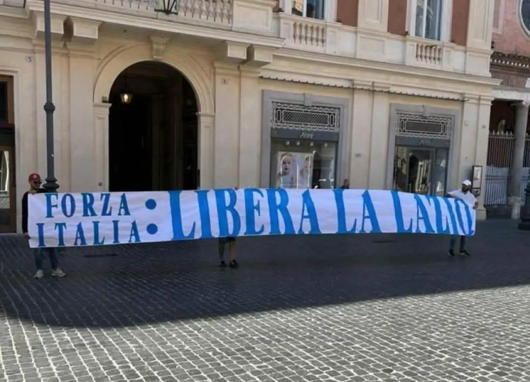 Continua la contestazione pacifica dei tifosi biancocelesti nei confronti del Presidente della Lazio Claudio Lotito. Dopo che uno striscione era stato appesa di fronte Montecitorio, stavolta è toccato alla sede di Forza Italia dove un gruppo di tifosi hanno esposto un nuovo striscione. Il classico “Libera la Lazio” stavolta è stato diretto proprio al partito politico di cui fa parte Lotito.