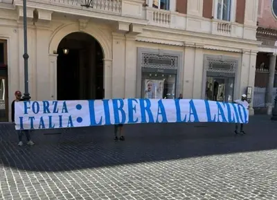 Lazio, striscione di contestazione contro Lotito fuori la sede di Forza Italia - FOTO